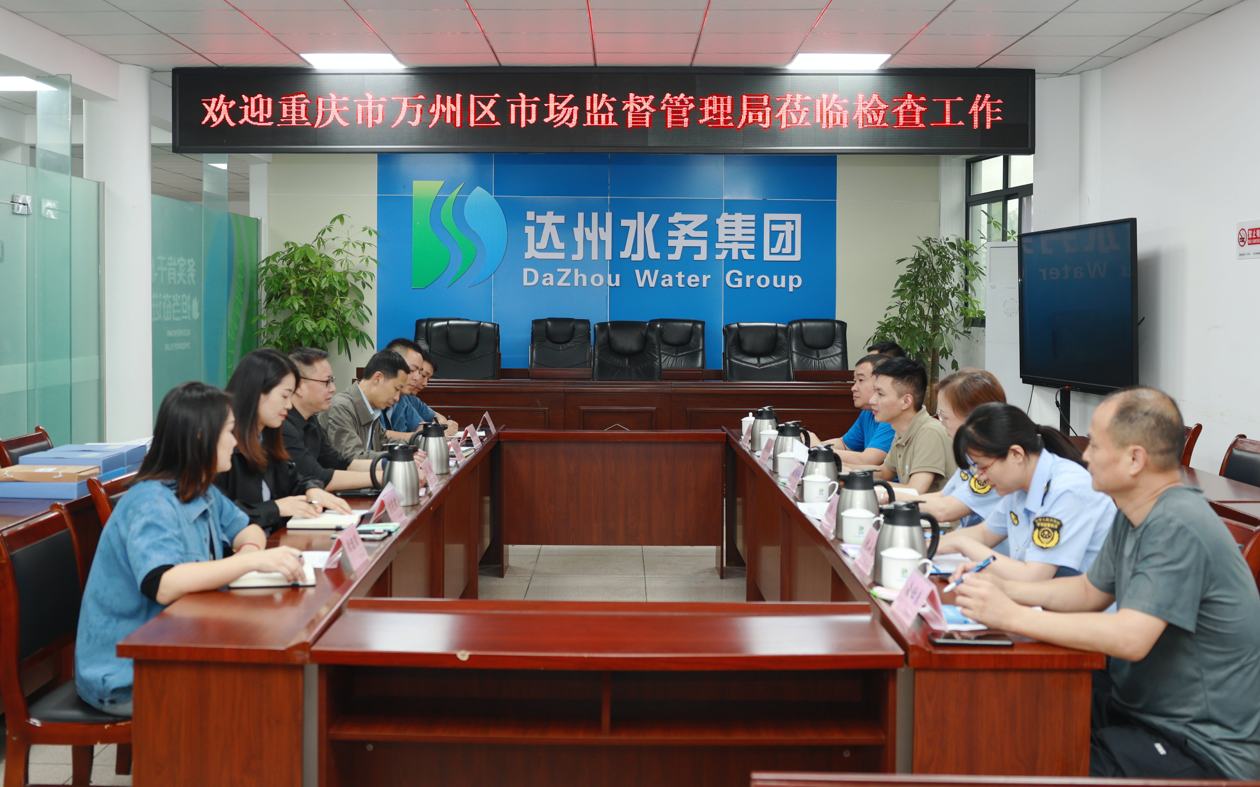9月30日下午,重慶市萬州區(qū)市場監(jiān)督管理局副局長殷荷評帶隊(duì)赴達(dá)州水務(wù)集團(tuán)開展“川渝計(jì)量”交叉監(jiān)督檢查,集團(tuán)黨委書記、董事長盧輝,黨委委員、副總經(jīng)理?xiàng)盍帲h委委員、副總經(jīng)理李莉君和集團(tuán)相關(guān)部門參加。