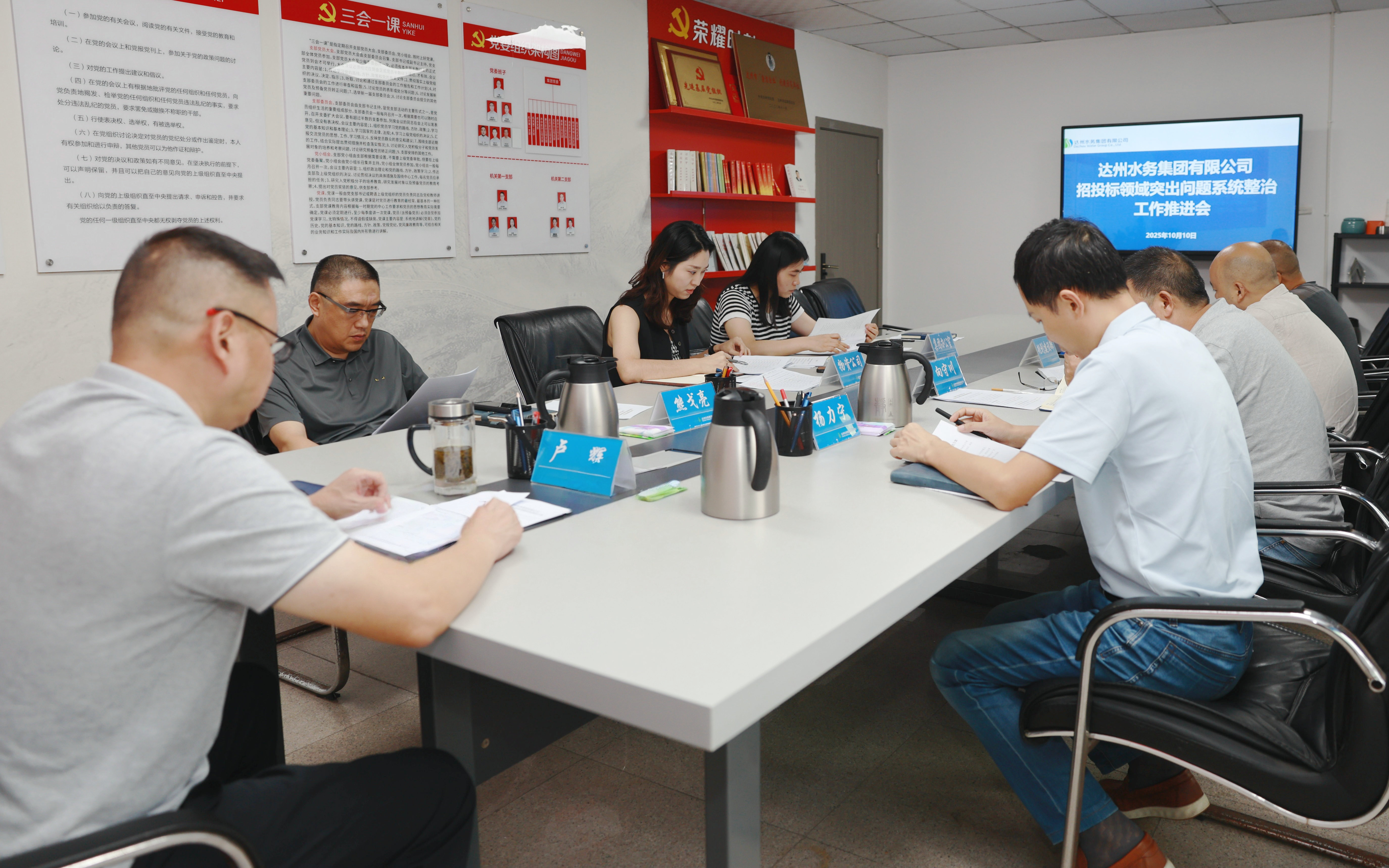 會議就《達州水務集團有限公司招標投標領域突出問題系統(tǒng)整治方案》進行了專題討論,向守川匯報了前期工作進展、現(xiàn)存困難問題和下一步打算。