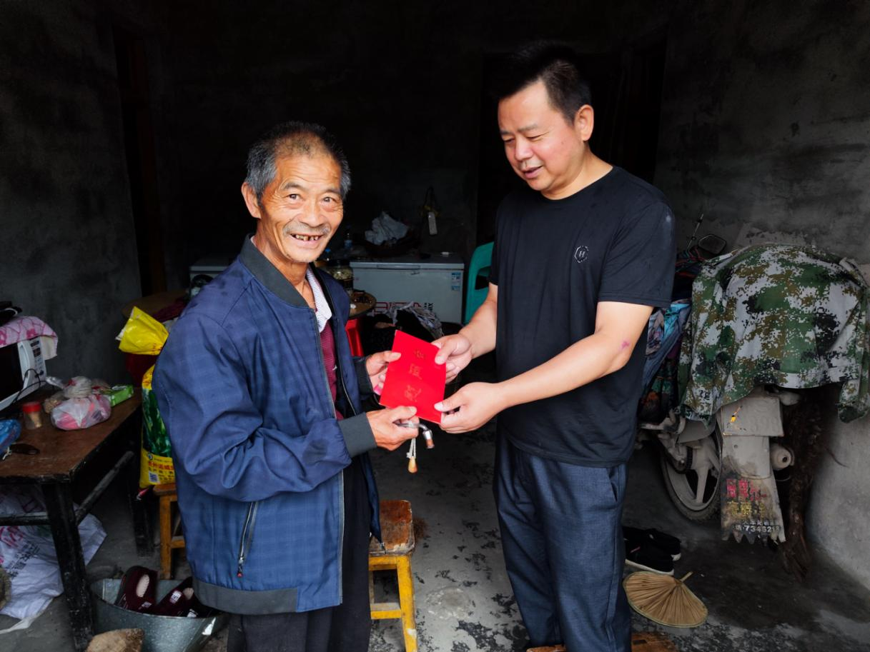 集團(tuán)公司駐渠縣文星村幫扶干部何能榮同志受集團(tuán)黨委委托,在“七一”前夕來(lái)到村里困難黨員、老黨員家中,為他們送去黨組織的溫暖。