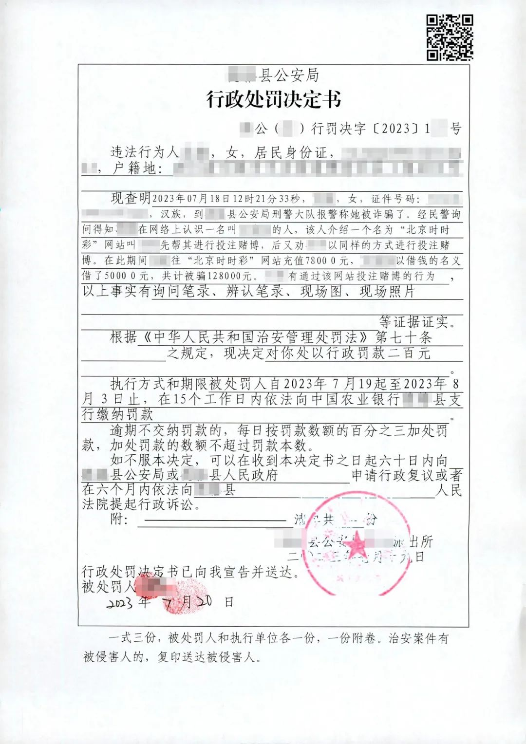 張女士終于明白自己被騙了,于是她急忙前往公安機關報警。在派出所,辦案民警對張女士被騙過程調(diào)查時發(fā)現(xiàn),雖然她存在被騙的事實,但是也存在參與網(wǎng)絡賭博的違法行為,因此她既是受害人,同時也是網(wǎng)絡賭博違法行為人,故公安機關對張女士依法進行了行政處罰。