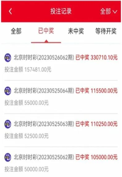 測試中,張女士用王恒賬號在該網(wǎng)站進行名為“北京時時彩”賭博游戲時,發(fā)現(xiàn)只要是按對方要求的時間段去購買指定號碼都能中獎,并且每次的贏利都非常高,提現(xiàn)到賬也非???。