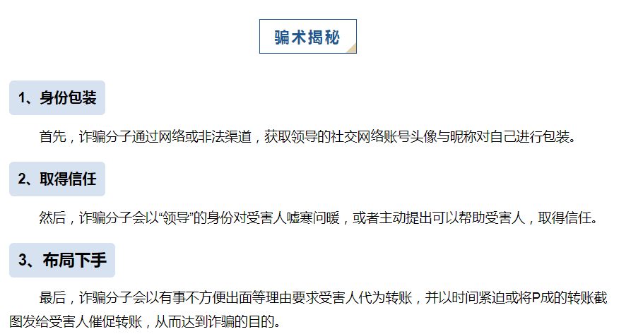 案例二:冒充領導詐騙下屬