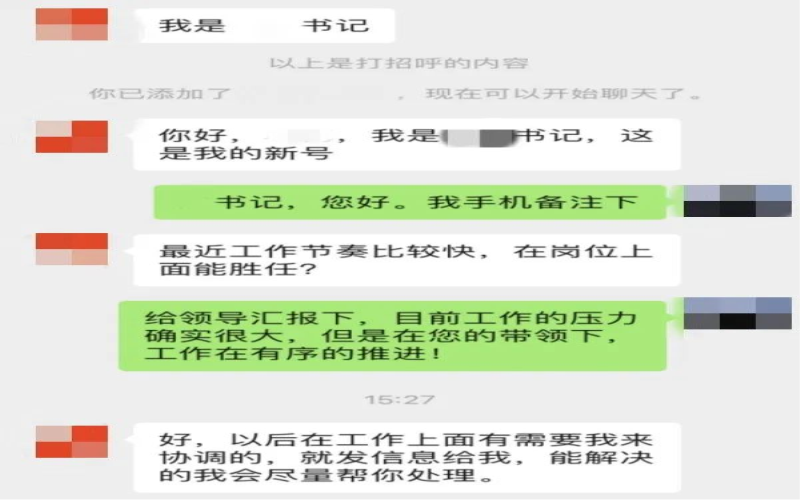 1、如遇到自稱領導添加好友時,一定要多方確認對方身份!