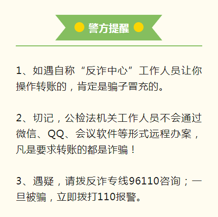 現(xiàn)實工作中,民警要先了解情況,進行核實調查,不會在網(wǎng)上辦案、更不會要你轉賬!