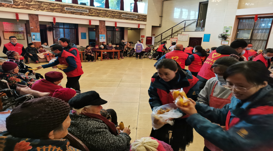 看,他們有的攙扶行動不便的老年人散步、手拉手拉家常談愿望,有的為老人清掃公寓、喂吃食物等等,全部志愿者忙碌的身影讓全體老人感受到了家的溫馨,而現(xiàn)場其樂融融的景象顯得格外的和諧溫暖。