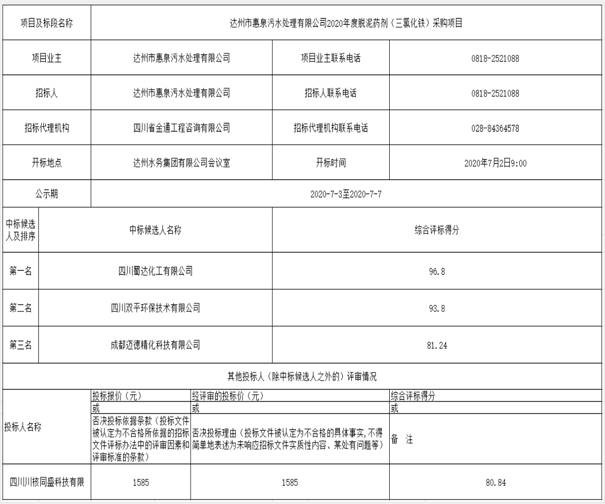 上一篇:達(dá)州市惠泉污水處理有限公司2020年度單過(guò)硫酸氫鉀復(fù)合粉采購(gòu)項(xiàng)目中標(biāo)候選人公示