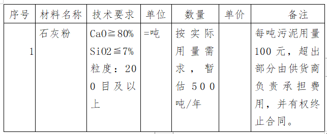 1.1項(xiàng)目名稱:達(dá)州市惠泉污水處理有限公司石灰粉采購(gòu)項(xiàng)目